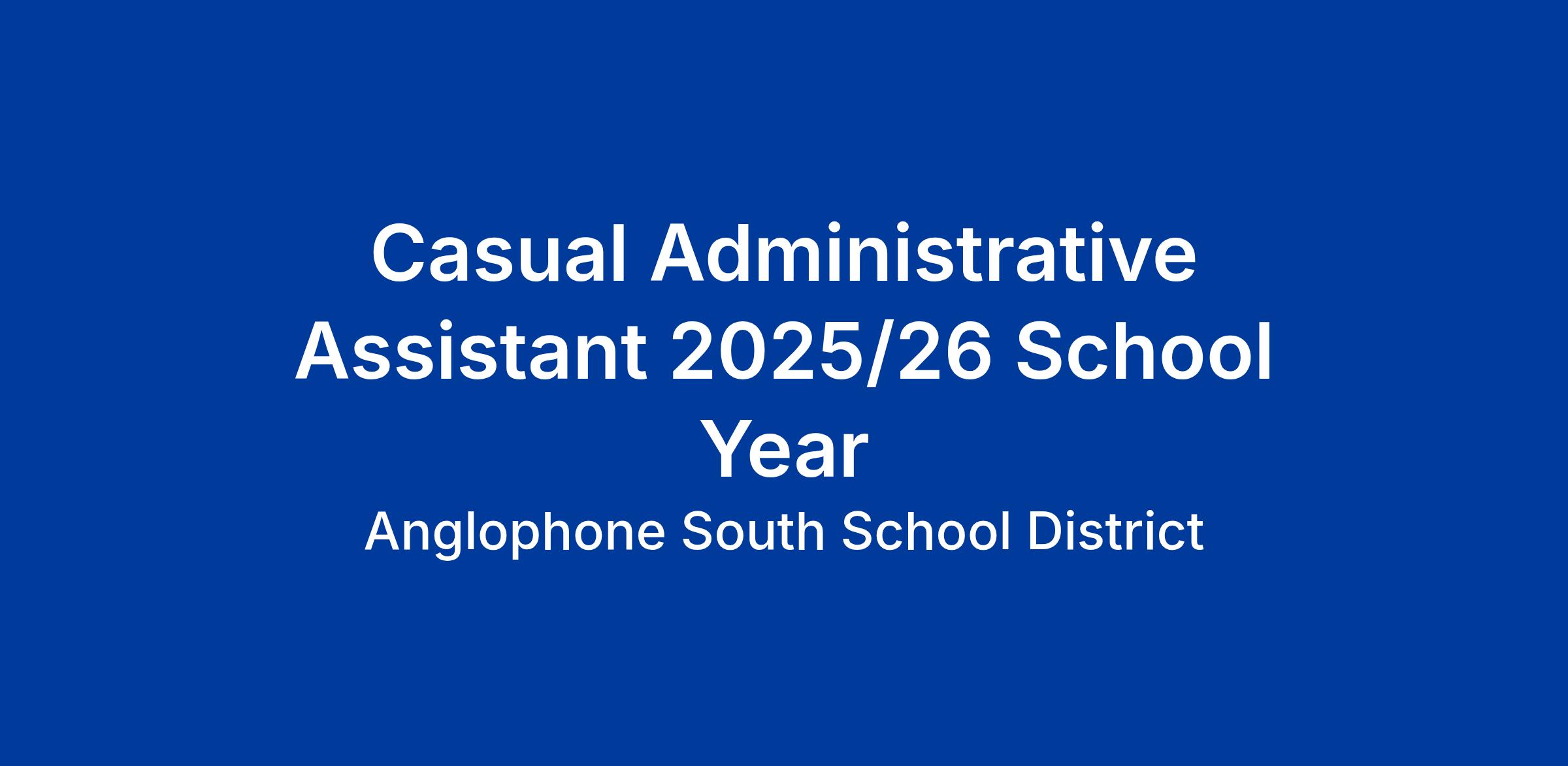 Anglophone South School District is inviting expressions of interest from individuals who would like to join our team as a Casual Administrative Assistant. This on-call casual position is ideal for those seeking flexible work opportunities within an office setting. This position primarily involves a variety of routine administrative duties under the supervision of a senior school administrative assistant, principal, or designate.