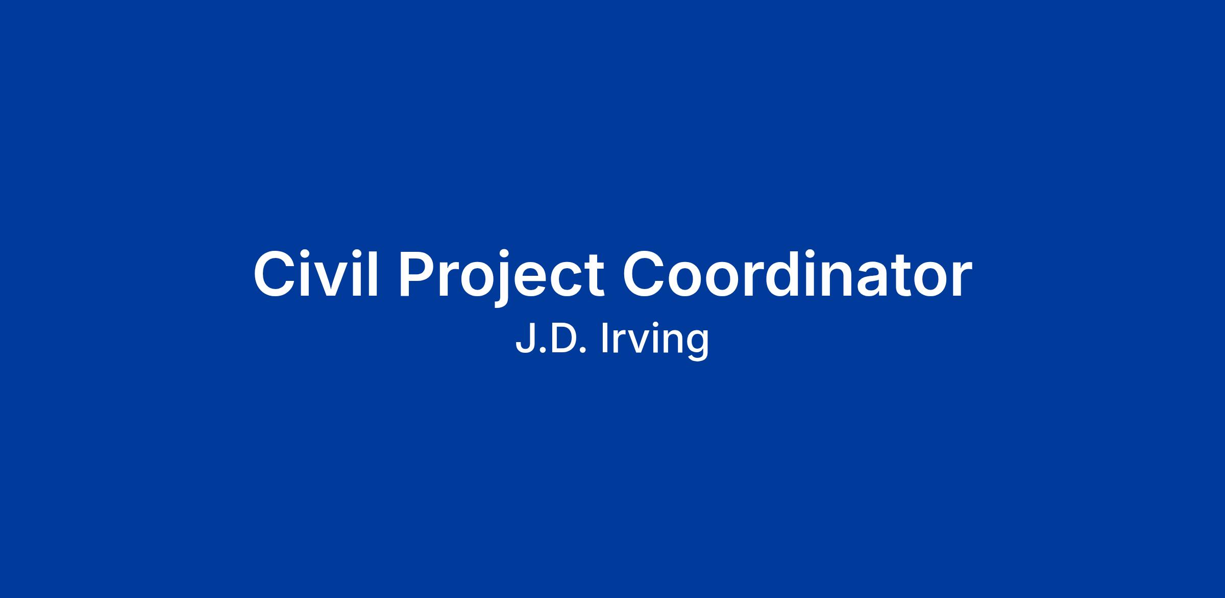 We are currently seeking applicants for the position of Civil Project Coordinator to join our dynamic team in Saint John, New Brunswick.
