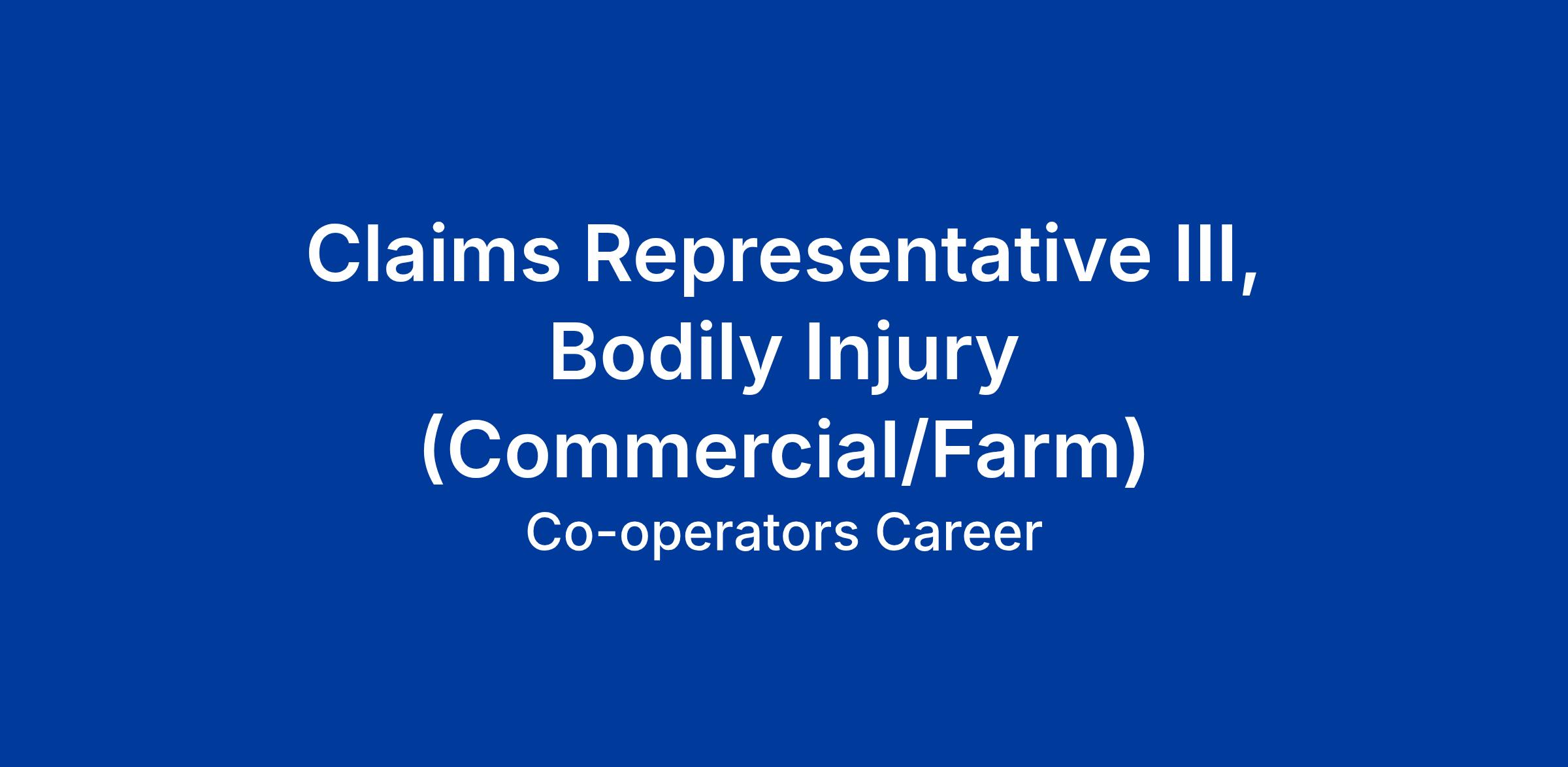 As a Bodily Injury Claims Representative III you will be responsible for the investigation, negotiation and resolution of complex Bodily Injury Claims. You will contribute to our client service culture through daily interactions and by implementing innovative, client-centric solutions.