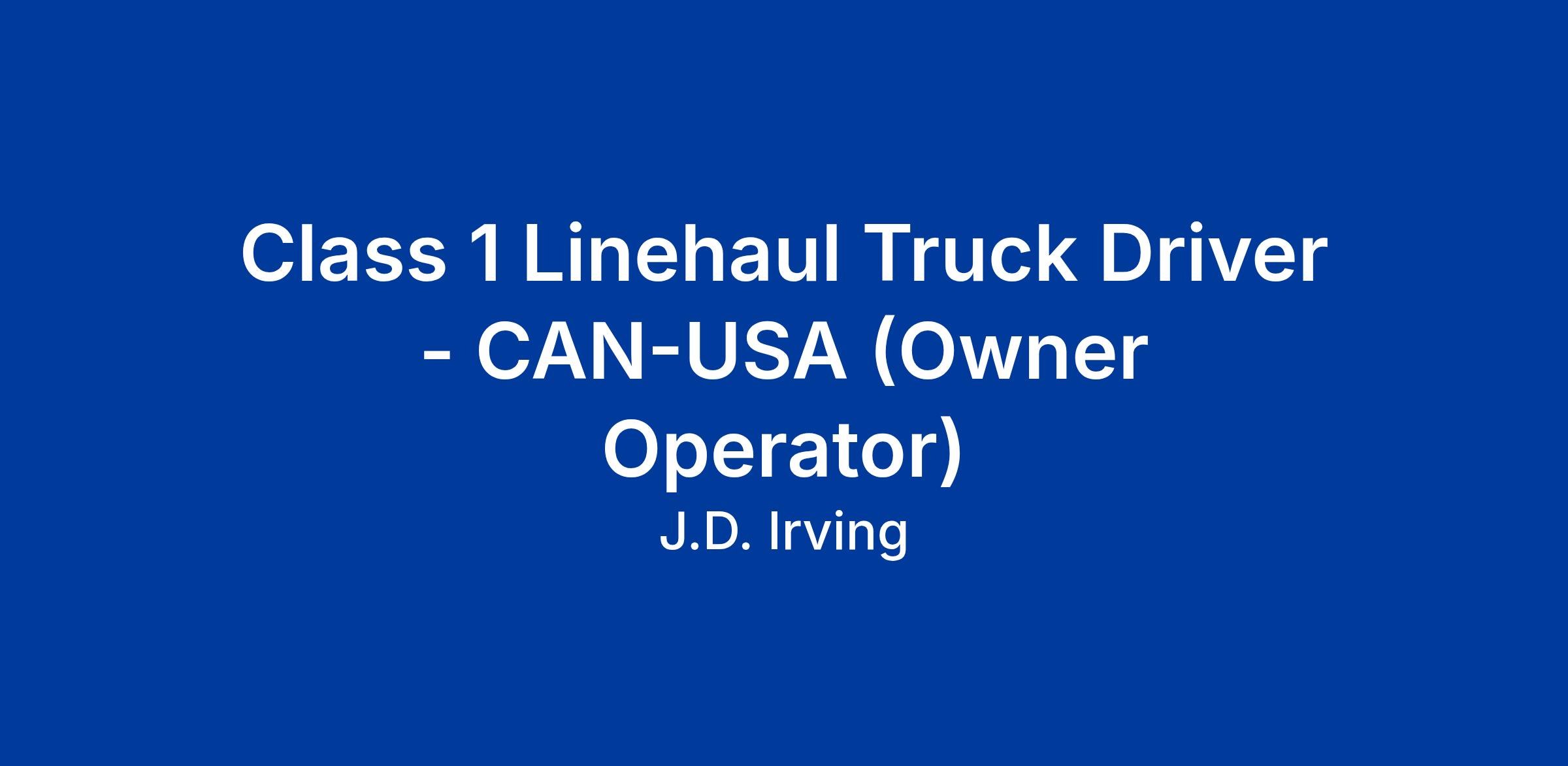 - Willingness to work linehaul legs into the United States, including New York and New Jersey.