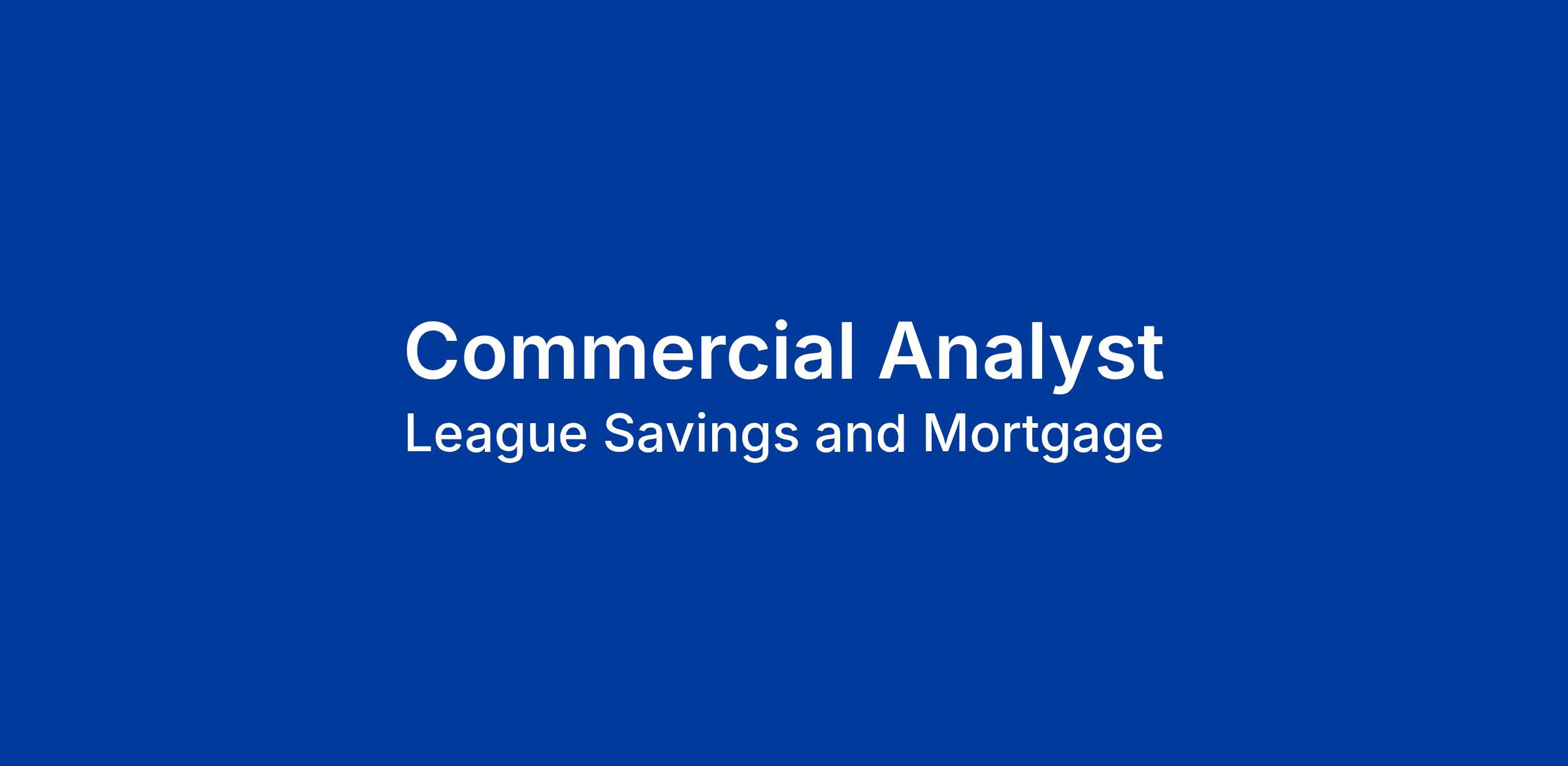 League Savings & Mortgage is currently accepting applications for a Commercial Analyst.