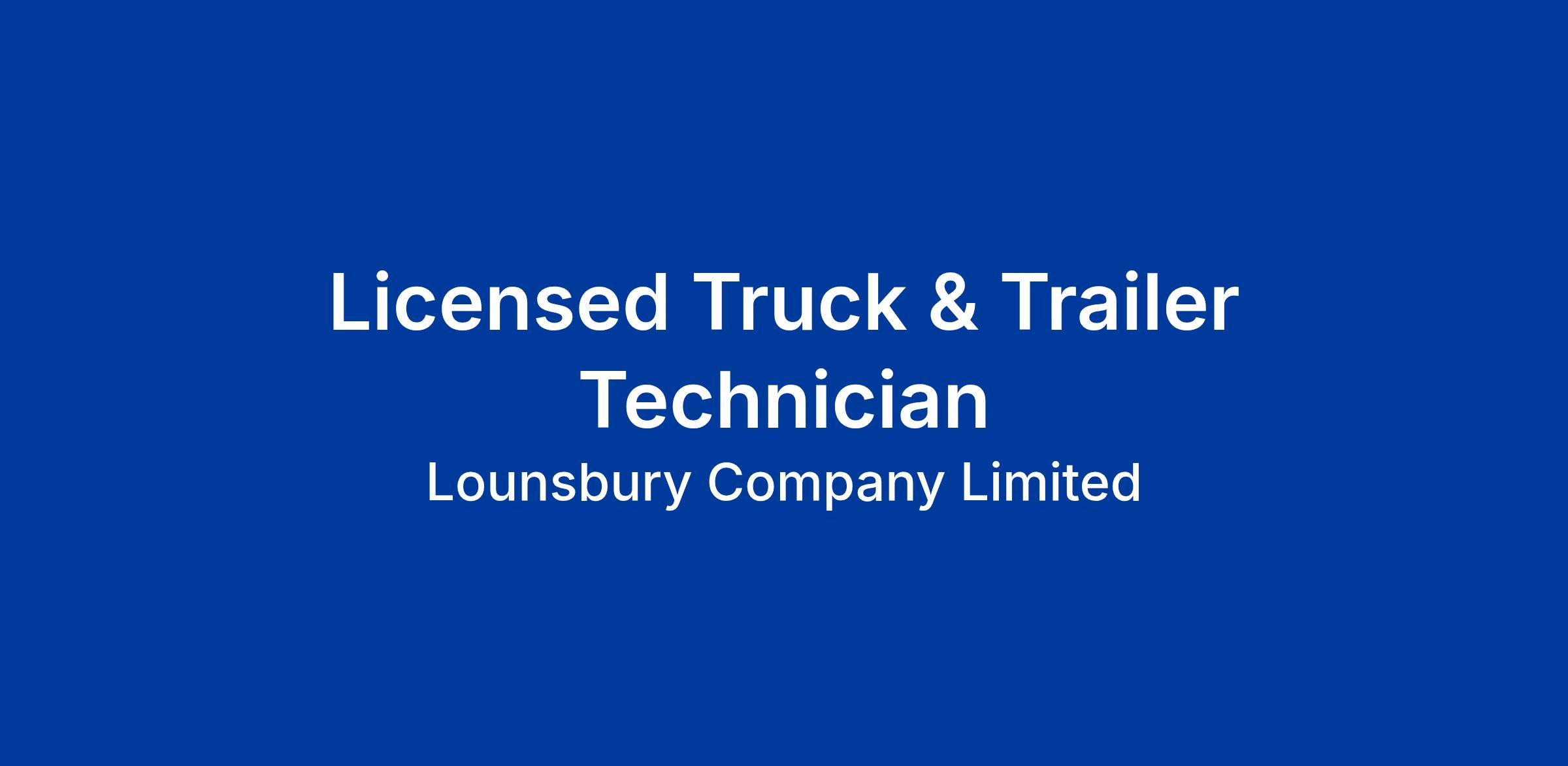 Lounsbury Heavy-Duty Truck Centre in Moncton is seeking a Licensed Truck & Trailer Technician. You will work with an experienced team of Technicians, doing diagnostics and repairs on MACK and/or Volvo heavy-duty trucks. Providing great customer service is our top priority. We hope you will share that passion.