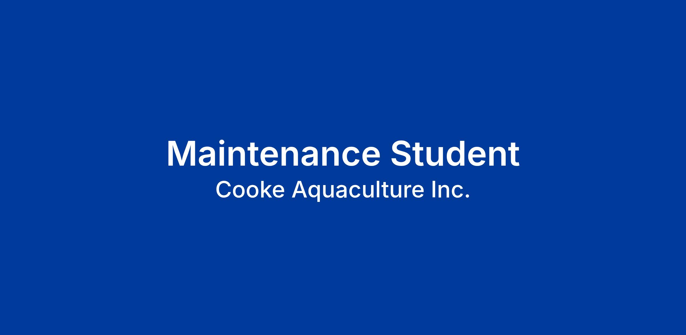 Kelly Cove Salmon, a division of Cooke Aquaculture Inc., a dynamic and growing east coast family company, with Platinum Member status in the Canada’s Best Managed Companies Program, has a full-time summer position for a Student Maintenance Worker at our St. George, NB facility.