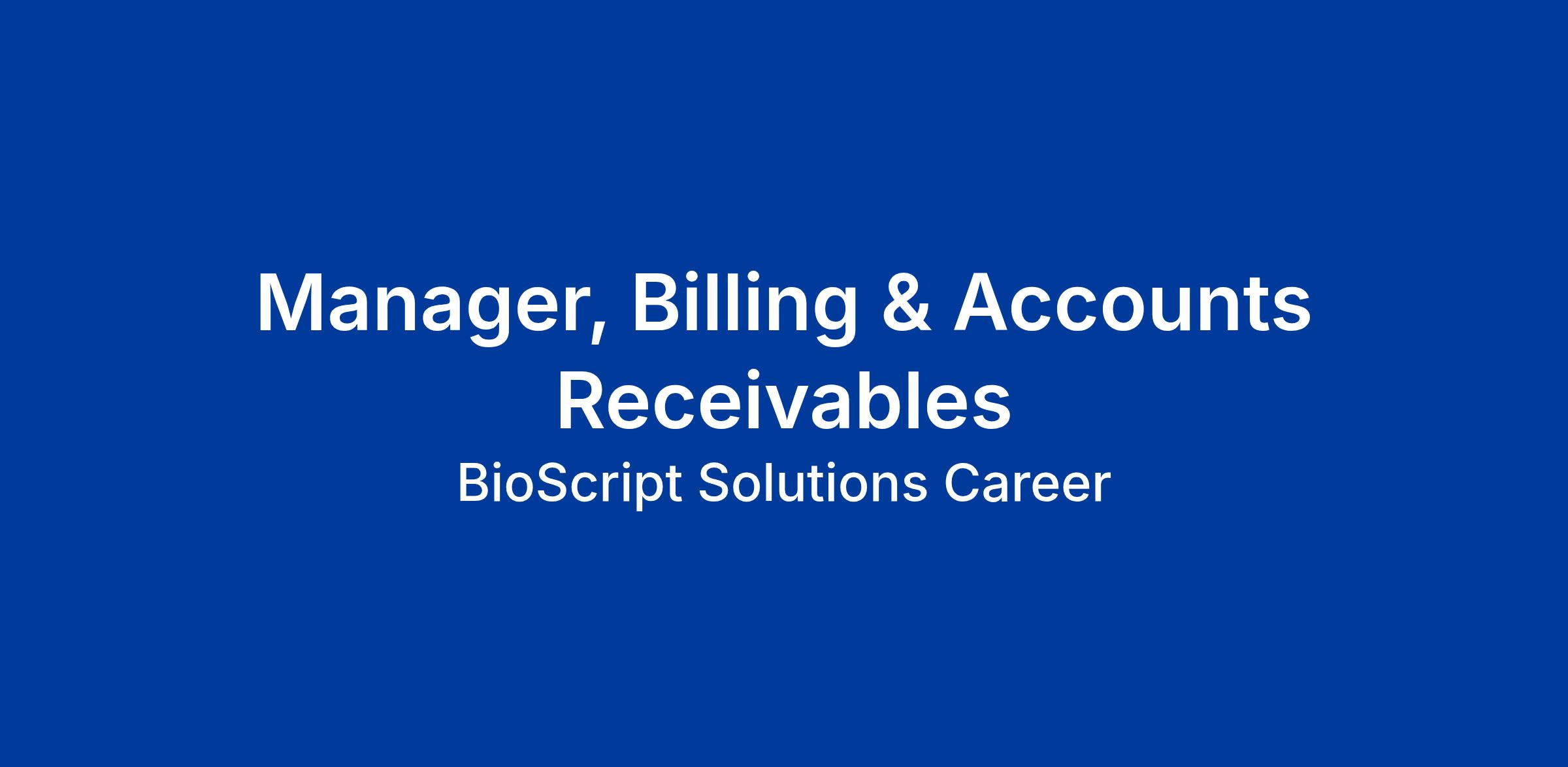 The Manager, Billing and Accounts Receivable, is responsible for ensuring the accurate and timely recording and collection of revenue through standardized billing, accounts receivable reconciliation and streamlined financial close procedures. The Manager works closely with all areas of the business to maintain revenue integrity and minimize collectability issues.