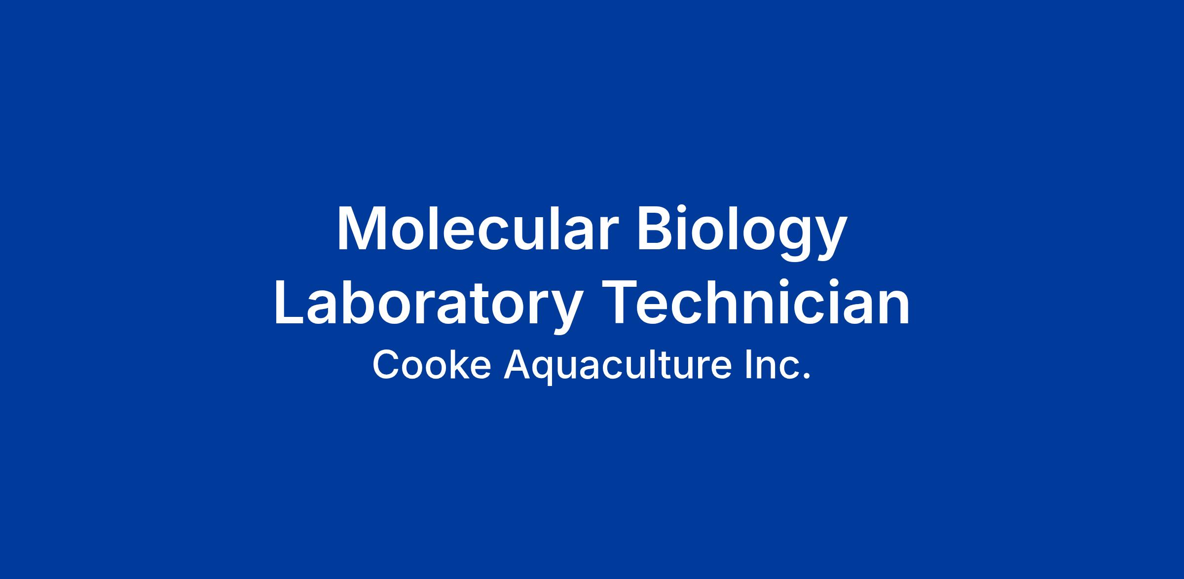 Kelly Cove Salmon Ltd., a division of Cooke Aquaculture Inc., a dynamic and growing East Coast family company, with Platinum Member status in Canada’s Best Managed Companies Program, is offering a unique opportunity for a highly motivated individual to join the Company’s team in Bay Fortune, PEI as Molecular Biology Laboratory Technician for our Atlantic Canada on land aquaculture facilities.