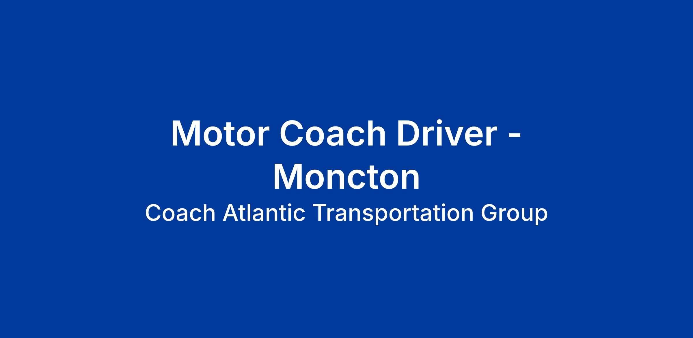 Coach Atlantic Transportation Group is currently recruiting Seasonal Motorcoach Drivers for the upcoming season in Moncton, NB. This is an exciting opportunity to join one of Atlantic Canada's leading passenger transportation companies and play a key role in delivering safe, reliable, and memorable travel experiences for our passengers.