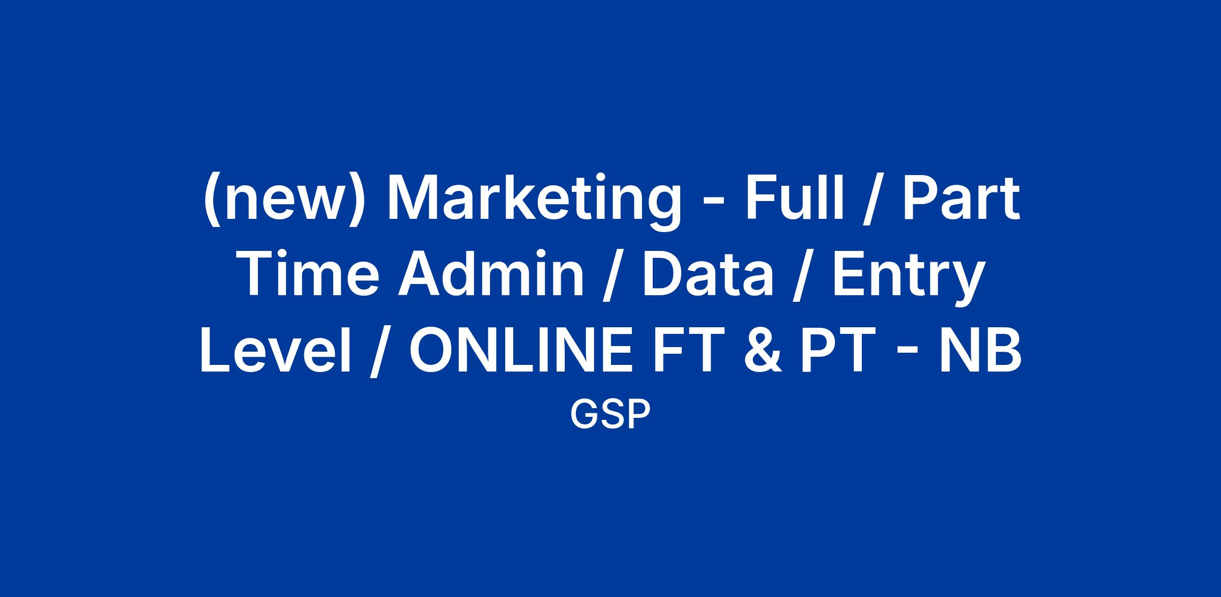 Marketing - Full / Part Time Admin / Data / Entry Level / ONLINE
