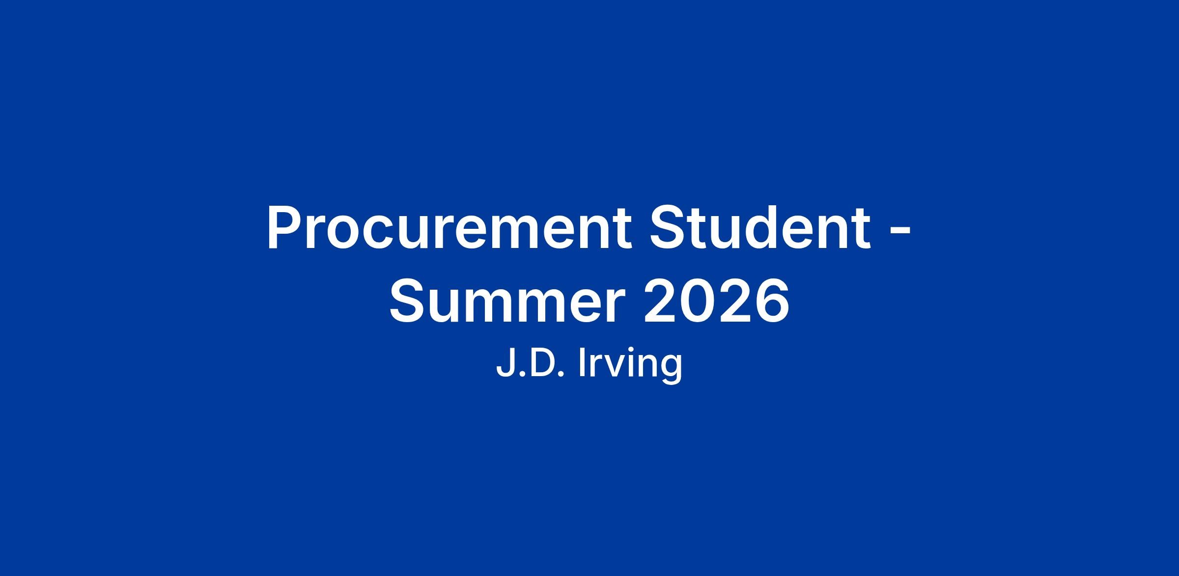 DescriptionThe Procurement Student will work with Corporate Procurement on a dedicated team supporting the J.D. Irving Moncton-based companies and will be responsible for assisting and/or performing the execution of compliance, system audits, assisting in various tasks and special projects.