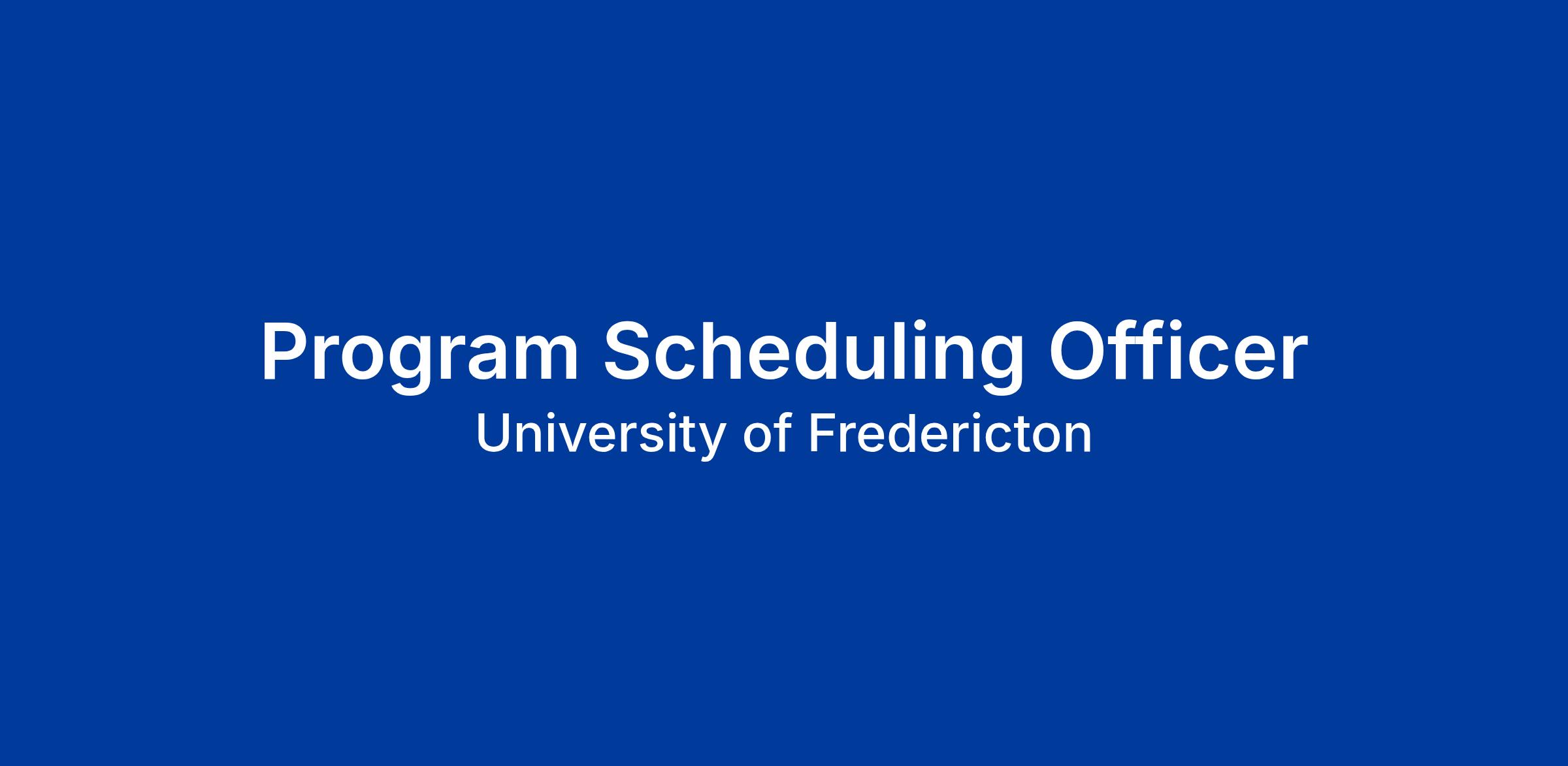 The University of Fredericton (UFred) is looking for a highly organized and detail-oriented Program Scheduling Officer to support the planning and coordination of course schedules across our academic programs.