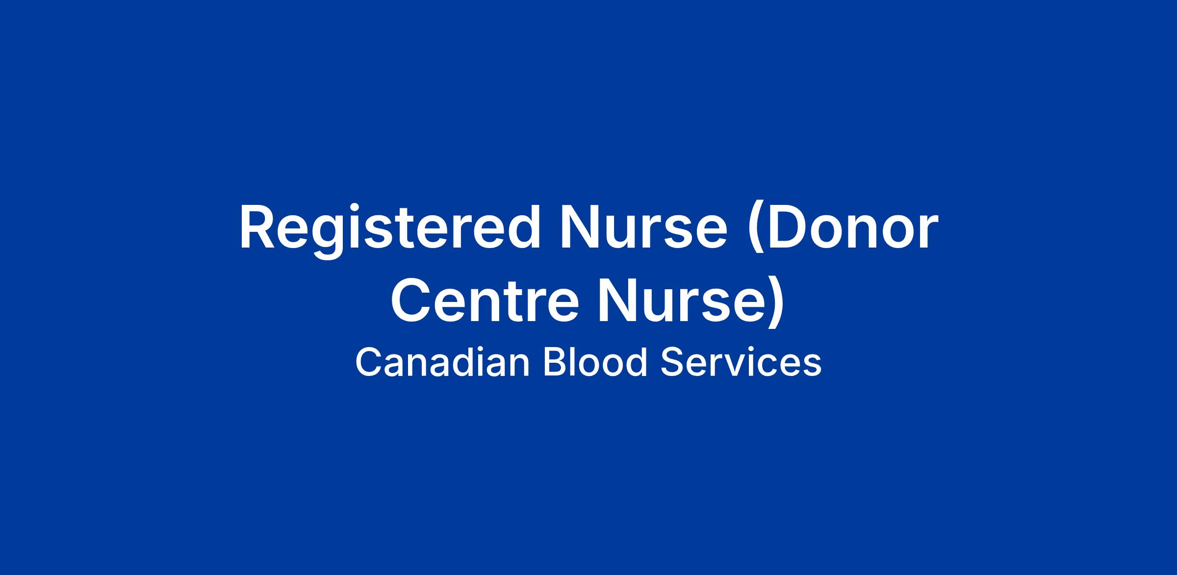 Canadian Blood Services is looking for a Temporary part-time Registered Nurse (Donor Centre Nurse) to join our dynamic Donor Centre team in Saint John, New Brunswick.