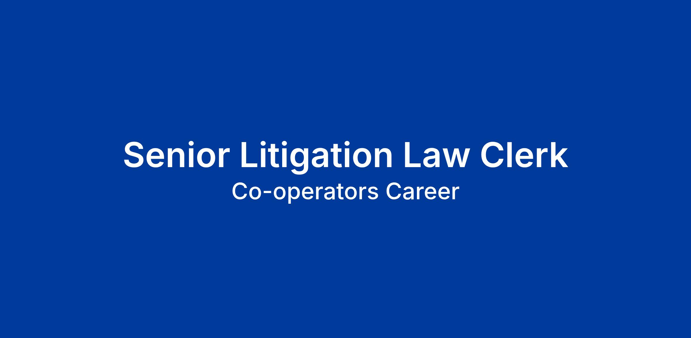 As the Senior Litigation Law Clerk, Property and Casualty (P&C) Litigation, you will support counsel in the handling of a variety of bodily injury and property matters on behalf of The Co-operators group of companies (The Co-operators) or its insured clients. In addition to traditional law clerk tasks, you will also provide counsel with the administrative support they require to successfully perform their roles. In this role, you will play a key role in the proper functioning of the legal department.