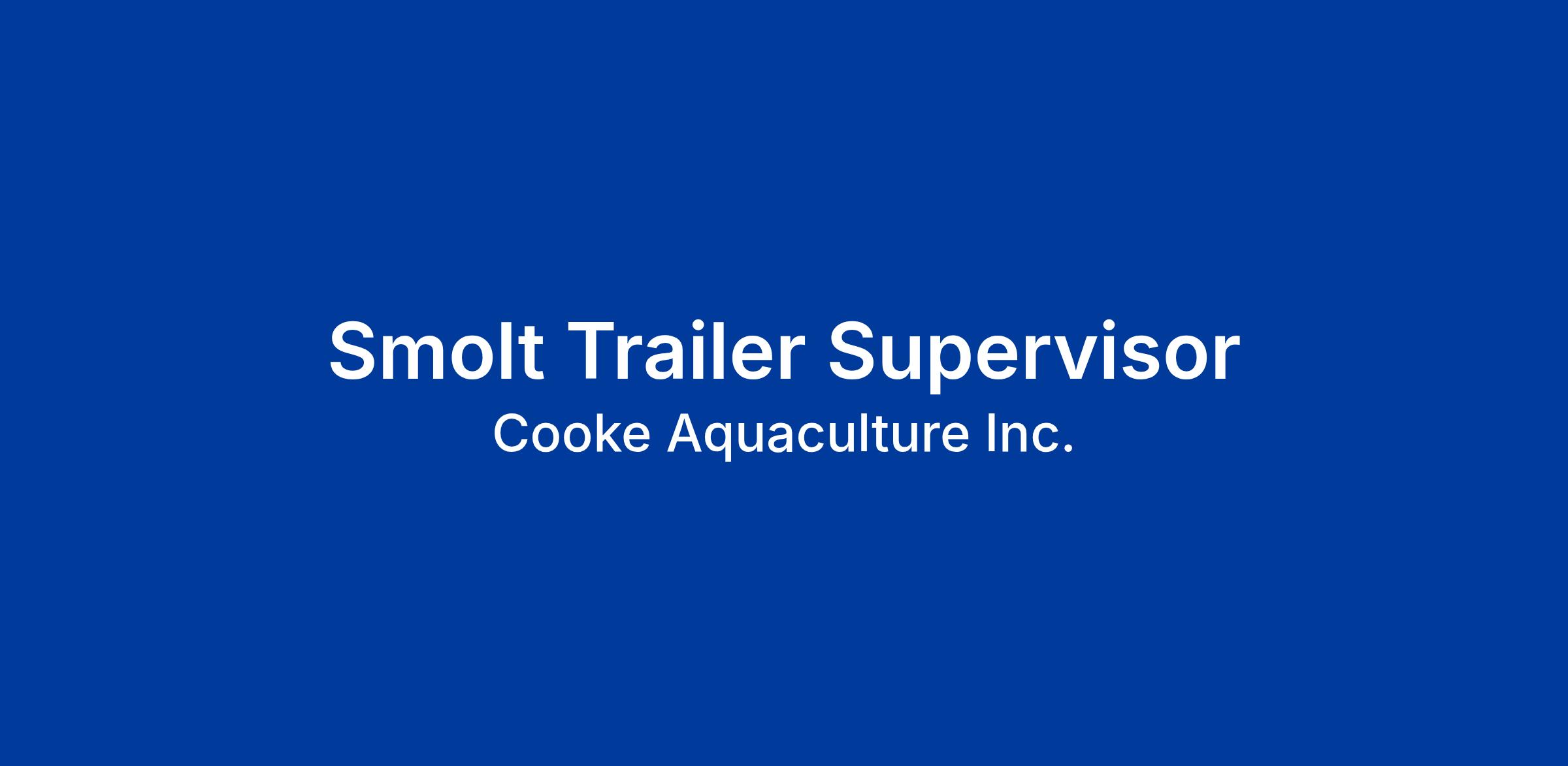 Kelly Cove Salmon Ltd., a division of Cooke Aquaculture Inc.—a dynamic and growing East Coast family company with Platinum Member status in Canada’s Best Managed Companies Program—is seeking a highly motivated individual to join our team as a Smolt Trailer Supervisor based in Lake Utopia, NB.
