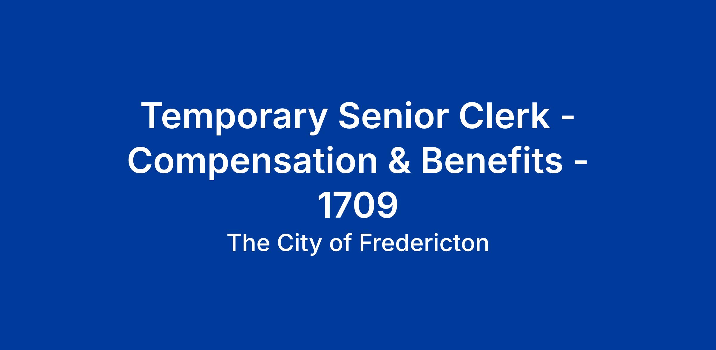 DescriptionThe City of Fredericton’s Department of Corporate Services is looking for a Temporary - Senior Clerk for their Compensation and Benefits section.