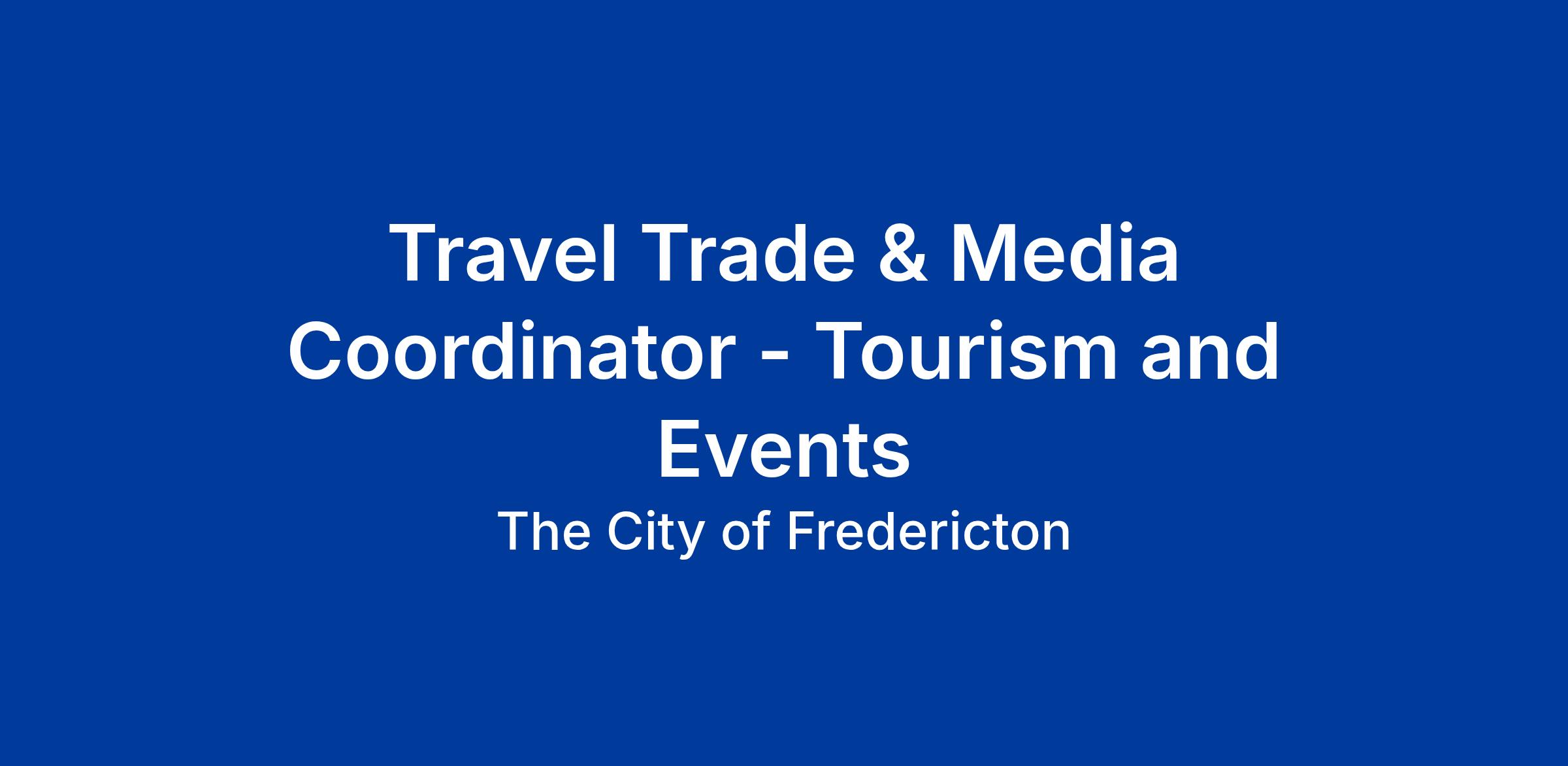 Reporting to the Manager of Fredericton Capital Region Tourism or designate, the Travel Trade & Media Coordinator is responsible for promoting, selling, and positioning the Fredericton Capital Region as a compelling tourism destination in domestic, U.S., and international markets.