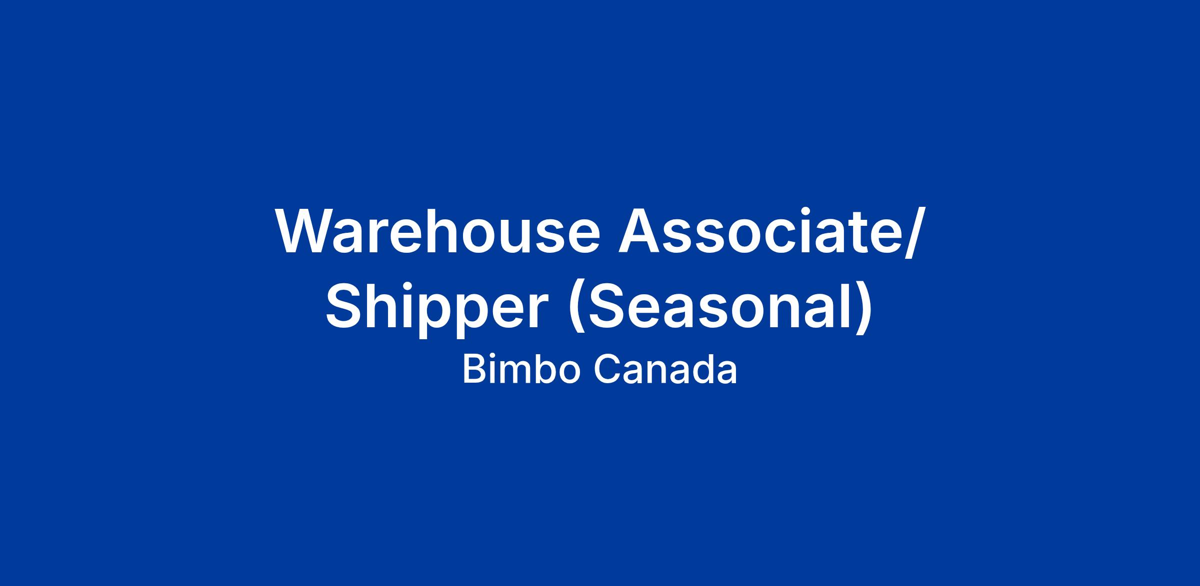 Warehouse Associate/ Shipper (Seasonal)